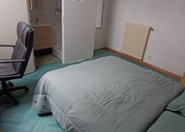 - Chambre de 13 m2 avec Salle de bain, télévision, bureau internet (fibre), lit double, armoire avec penderie, chevet, serviettes, oreillers, couette et draps fournis.
