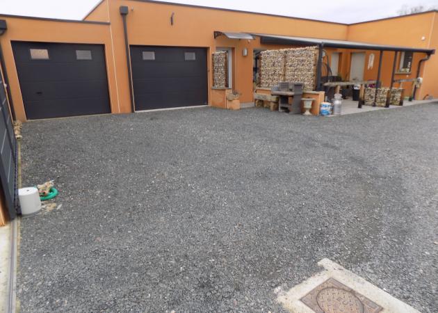 garages indépendants carrelés ,chauffé, isolés et aménagés + 1 chambre indépendante 7m2 au fond du garage. Dans une maison neuve au calme.