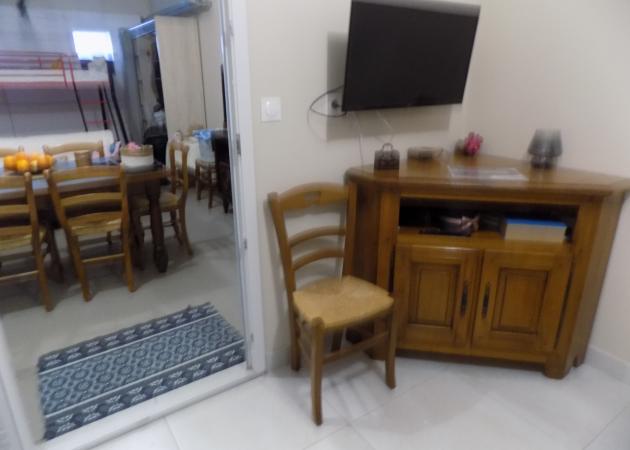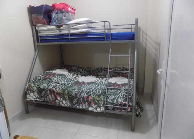 La chambre comprend un lit superposé TV, wifi (fibre) et un bureau. Dans le garage une penderie