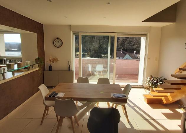 2 salles de bains, un grand balcon avec vue sur la rivière et la nature. Accès direct à la voie verte pour aller sur Montbéliard ou Bavans.