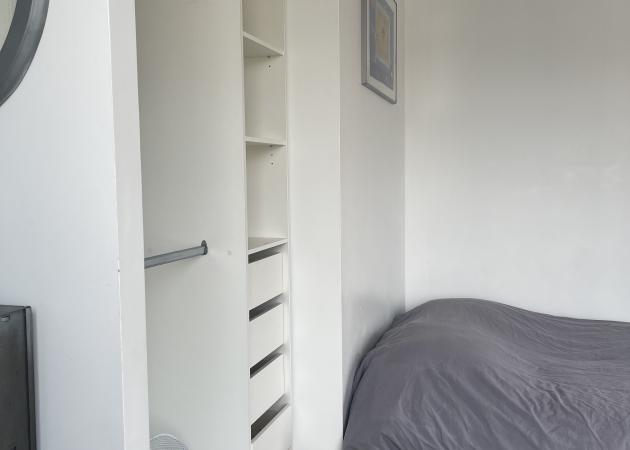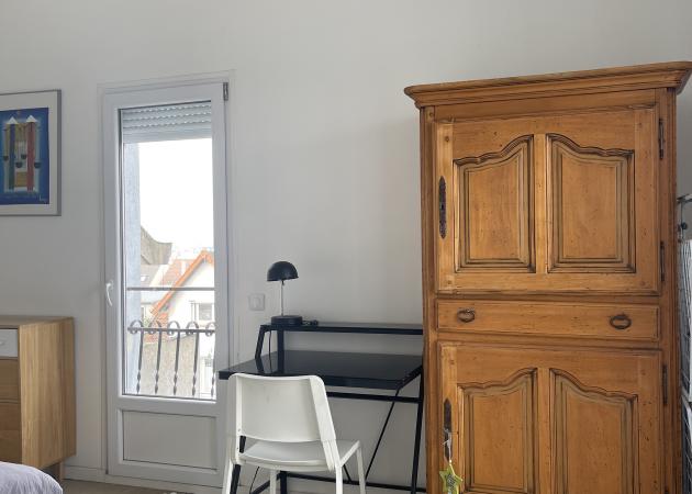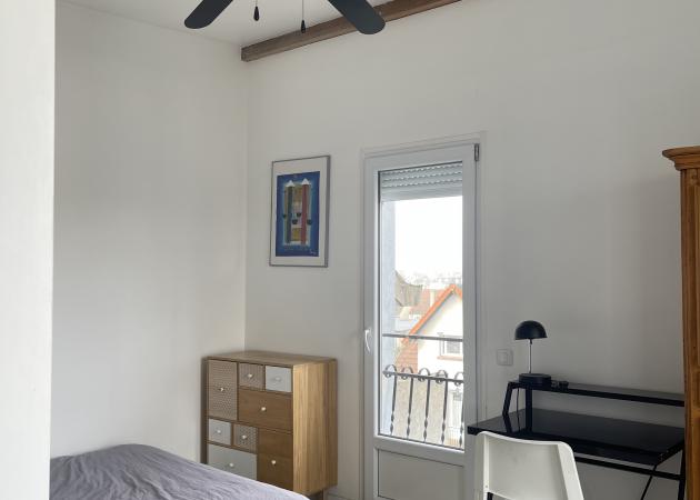 Je propose en location une chambre privée (14m2) avec canapé-lit (120x200 cm), bureau, penderie et balcon privé.