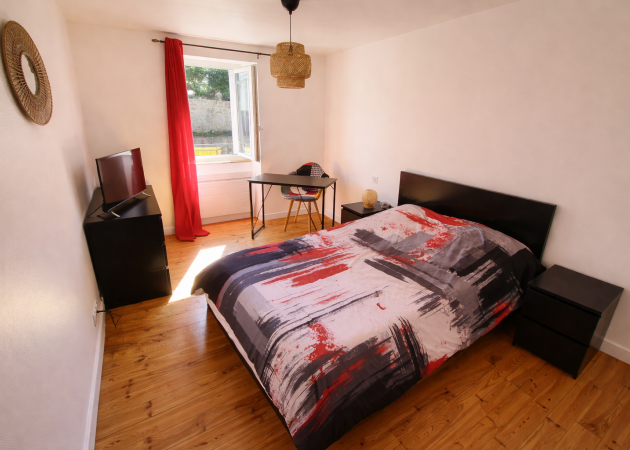 Chambres avec lit, chevet, commode, téléviseur, bureau, fauteuil, connexion internet, fibre et 5G.