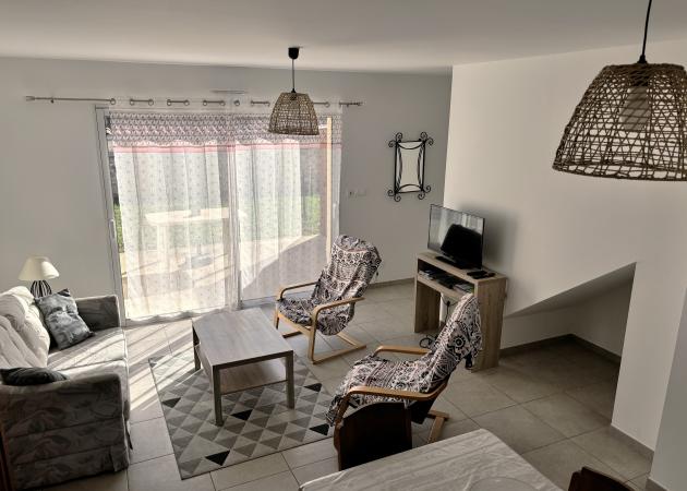 Pièce a vivre en RDC, 2 chambres à l'étage. Parking terrasse et jardin. Tarif hors taxe de séjour.