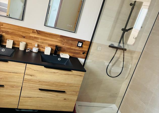 le 1er étage : étage des locations avec 2 chambres en location , 1 toilette , 1salle de bain douche italienne avec 2 vasques .