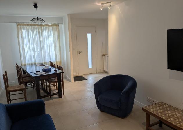 Le salon est équipé de canapés, d'une grande table et d'une TV connectée 55".