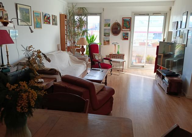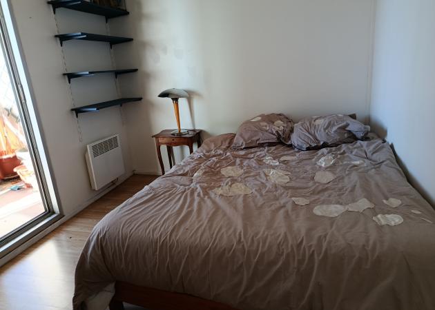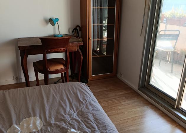 Chambre lumineuse donnant sur un grand balcon, dans un appartement de 75m2. Jouissance de la cuisine toute équipée, salle de bains, WC séparés et partiellement du salon. L'appartement est situé à Montreuil à 2'du métro croix de Chavaux. Commerces, restaurants, nombreux cafés animés et loisirs à proximité. Quartier très vivant et chaleureux.