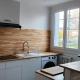 - 1 cuisine avec tout le nécessaire (four, plaques, frigo, micro-onde, grille-pain, cafetière, bouilloire, etc.)