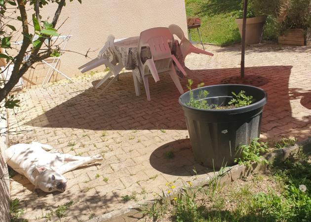 Présence d'un gros et vieux chien très gentil mais collant et qui perd ses poils ! Et un chat qui ne fait que passer.