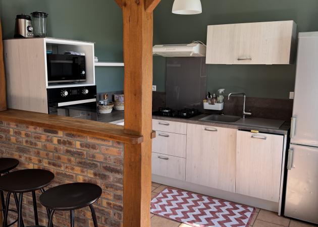 La cuisine contient toute la vaisselle nécessaire ainsi qu'une machine à café, une bouilloire et un toaster.