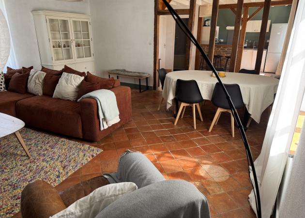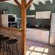Le rez de chaussée se compose d'une belle pièce de vie, d'une cuisine aménagée et équipée (four, micro-onde, lave-vaisselle, réfrigérateur et plaque de cuisson) ainsi que d'une salle de bain avec une baignoire-douche.
