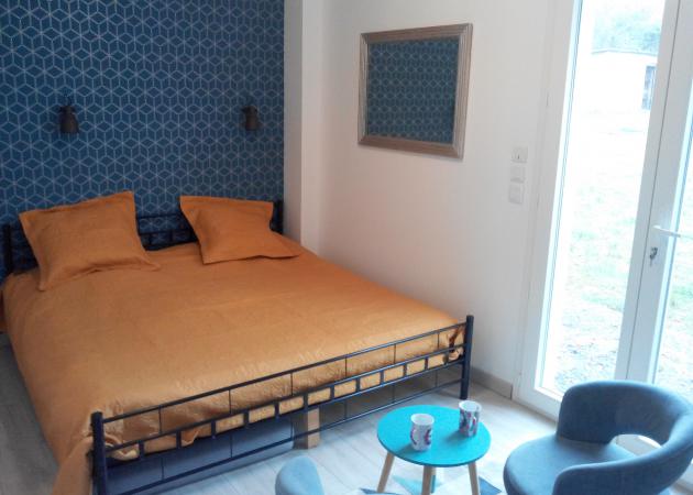 Commode et grand lit en 180, linge de bain et de lit fournis. Salle de bain et wc privé. Le tarif comprend la nuitée et le petit déjeuner. Possibilité de repas en supplément.