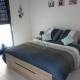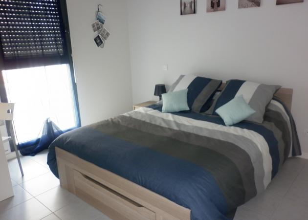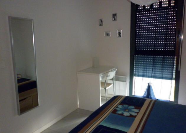 Chambre avec lit 140 x 190, table de chevet, un bureau. Salle de bain avec douche et lavabo. Nombreux rangements. Possibilité accès à la cuisine.