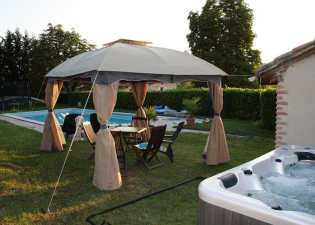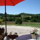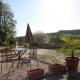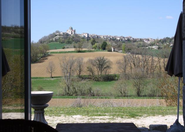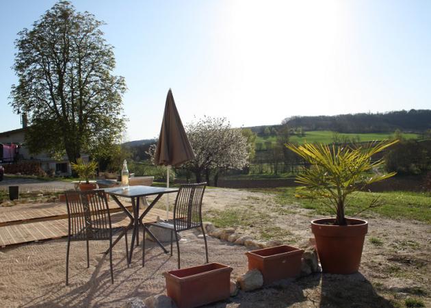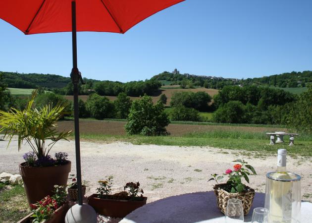 Par les portes ouvertes vous vous trouverez sur votre terrasse privé. (avec mobilier de terrasse) où vous avez une vue dégagée sur la vallée et Castelnau-Montratier.