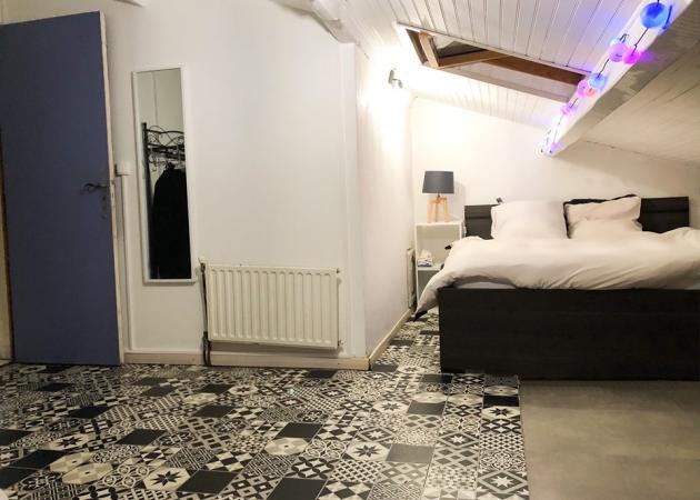 2 Chambres mansardées à l’étage, desservies par une salle de bain semi-privée dans une maison atypique au charme niçois.