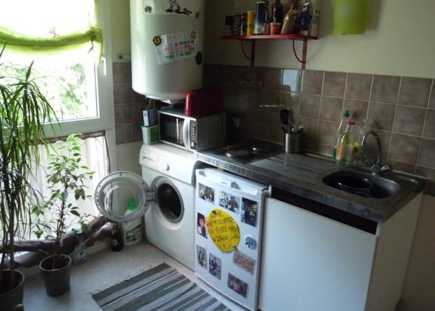 Cuisine tout équipée séparée du salon , salle de bain , marchés à proximité , petit immeuble calme , place de parking.