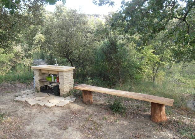 Toilette sèches, douche solaire, évier, barbecue.