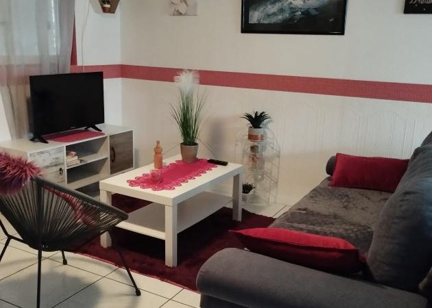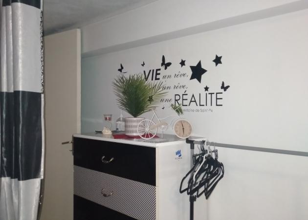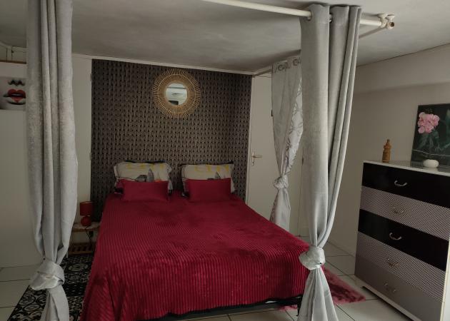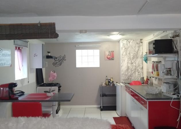 Ce studio est aménagé d'un canapé lit 2 places, un lit 2 places,(non cloisonnés) d'une penderie, plan de travail pouvant servir de bureau, d'une cuisine ouverte sur salon, frigo, four à micro-ondes ,ustensiles de cuisines, et salle de douche + TV. Wifi disponible.