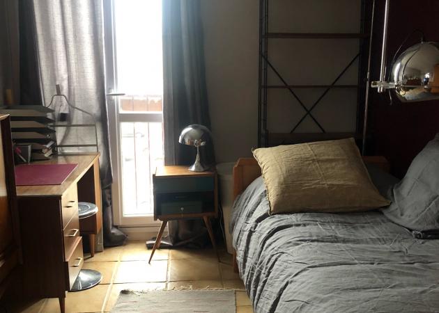 1 lit simple, 1 bureau avec porte-documents et lampe de bureau, 1 dressing et nombreux rangements (boites et bacs de rangement), 1 chaise, 1 table de chevet, 1 corbeille en osier pour le linge sale, 1 poubelle et 1 télévision si besoin.