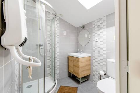 Chambre galet gris, cuisine, SDE, parking, 10km sud ouest de Lyon