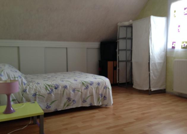Chambre spacieuse claire dans villa au calme pour étudier, récupérer après le travail, équipée d'un bureau, d'un lit en 140, d'une table de nuit, d'une penderie, placard.