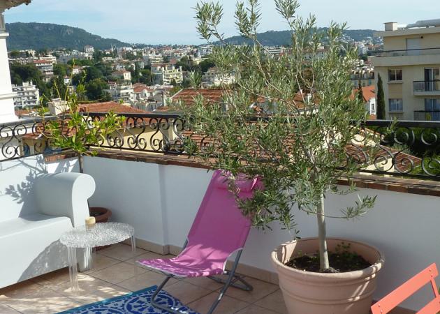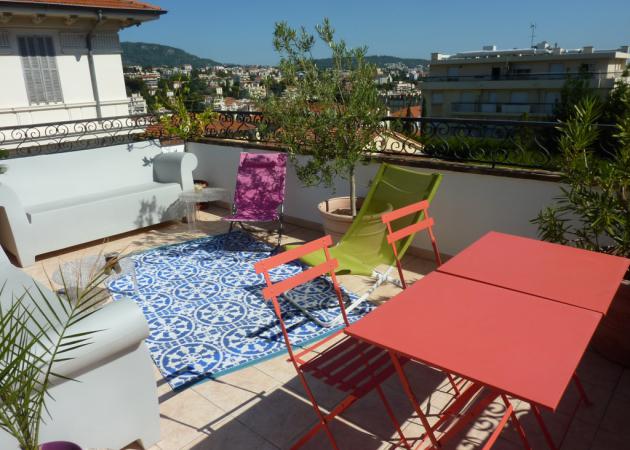 3 grandes chambres avec douche et WC privatif, très calmes dans maison individuelle entièrement rénovée et jouissant d'une décoration soignée; Elles disposent d'une petite cuisine et d'une terrasse en rooftop très ensoleillée avec vue sur toute la ville jusqu'à la mer..