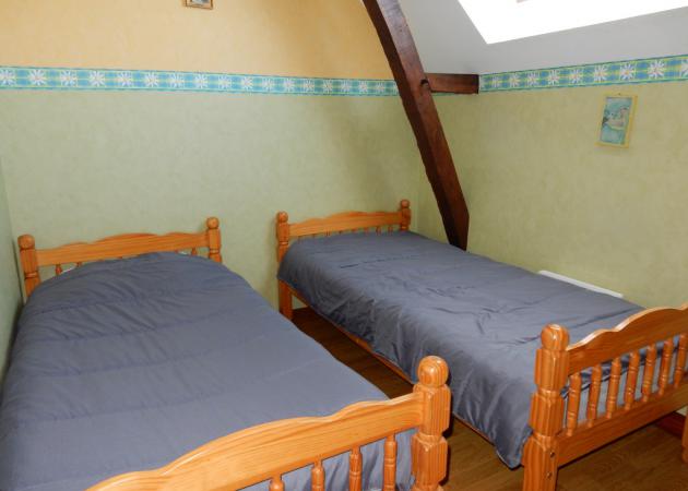 A l'étage, 50 m² : 1 chambre avec lit double, 2 chambres avec 2 lits simples dans chacune, 1 WC et 2 salles d'eau.