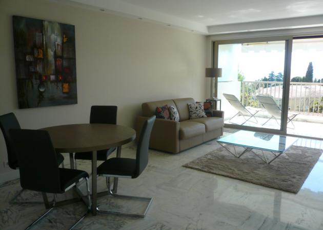 Nous louons notre grand deux pièces totalement rénové en 2013 à certaines dates de l'année, qui se trouve dans une résidence de grand standing et avec gardiens 24 H/24. très belles vues sur le parc et la mer lointaine. Il est situé au 3 ème étage avec une terrasse de 15 m2, orientation au sud.