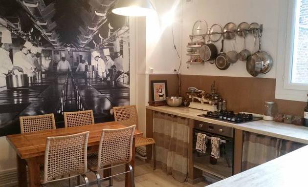 une cuisine aménagée et tout équipée (four, machine à laver et séchoir, plaques au gaz, lave-vaisselle) récente de 12 m² ;