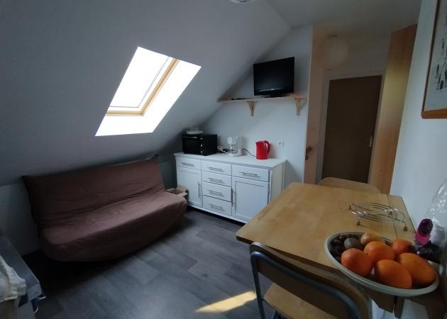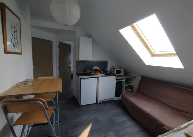 Chambre entièrement meublée. Cuisine aménagée, sdb et WC à partager entre deux chambres. Accès indépendant.