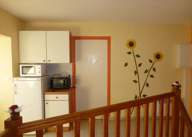 - un coin cuisine aménagé et équipé disponible à partager.
