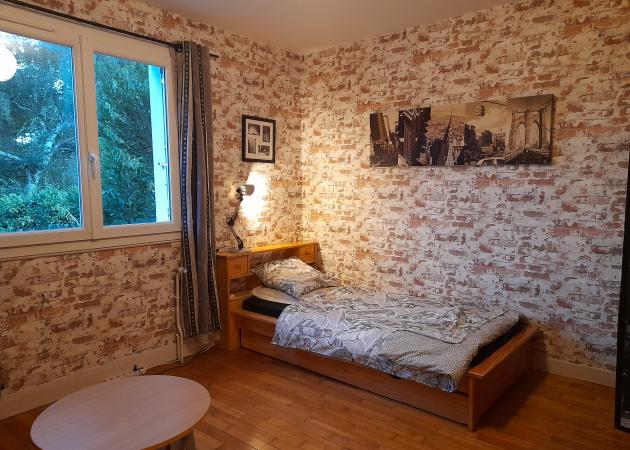 La chambre donne sur le jardin, tranquillité absolue.