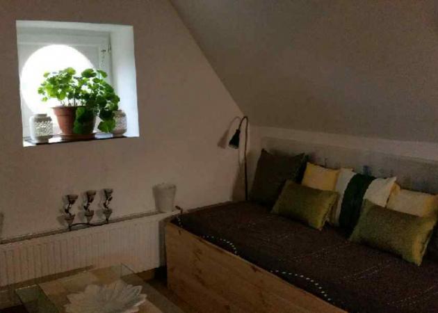 8 minutes from the medieval city, on the top floor of an old town house, we offer a studio with an area of 35 m², including a sleeping area, a living area including a kitchenette and a bathroom (bathtub , shower and toilet).