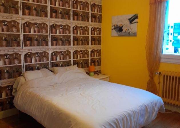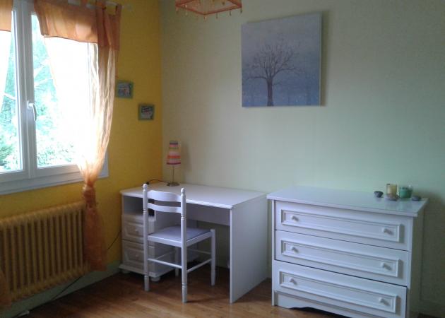 La chambre est d'une superficie de 15 m2, et est meublée avec lit 2 pers, armoire; commode, étagère et bureau.