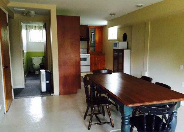 Petit appartement 1cc avec cuisine complète à louer sur une fermette.Divan lit. Notre famille habite dans le logement du haut.Situé à 5 km du centre ville de Magog où il y a plusieurs activités à faire; plage, théâtre,cinéma... Possibilité de dormir gratuitement en échange d'aide sur le terrain!