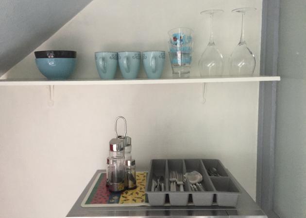 *** Il est mis à disposition un réfrigérateur, une plaque vitro-céramique, un micro-ondes, une table ronde et de deux chaises hautes, des étagères et placard de rangement, un canapé, un lit 120X190 et table de chevet, une armoire, un bureau et son fauteuil, un meuble 4 cubes.