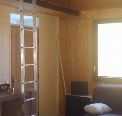 Maison isolé au bord du lac, dans les montagnes. Foret au tour. Chauff a bois.