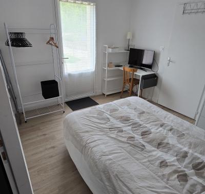 Chambre individuelle dans maison de plein pied dans un cadre verdoyant et calme.
