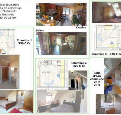Location chambre de 12 M2 chez l'habitant avec lit 2 places, placard, bureau, chaise....