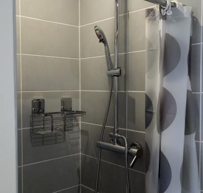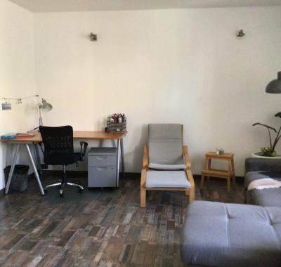 Studio cosy de 25 m2 en rez-de-chaussée, avec wc séparé et salle de bains à l'étage.
