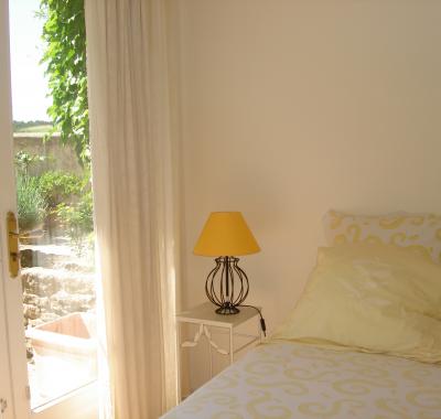grande chambre 25m2, lit de 140, bureau, accès à une cuisine d'été pour petit déjeuner (gazini...