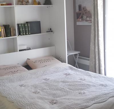 Bonjour,je propose une chambre de 12m2 avec un lit double ,une penderie et un bureau. Salle de ...