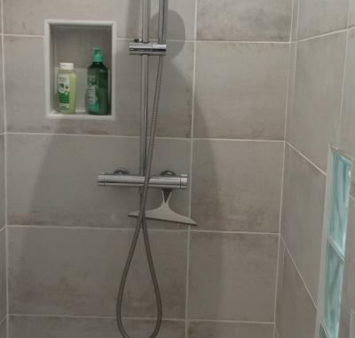 Chambre de 12m2 avec un lit double dans une maison construite en 2012; salle de bain communes a...