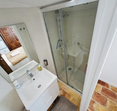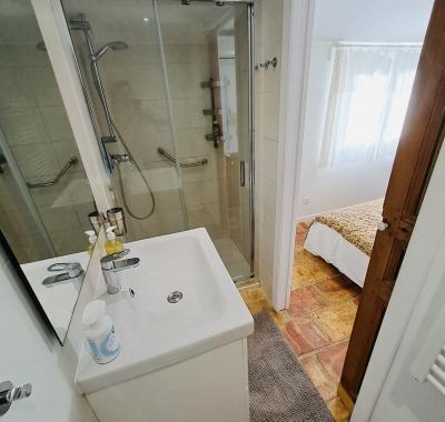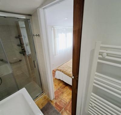 Une belle chambre avec grand lit double électrique avec douche et toilette privative à l'étage ...
