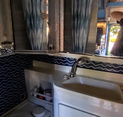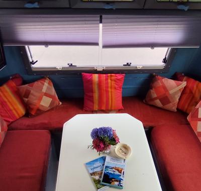 Dans camping car vintage ERIBACAR. Un lit double 140 X 195 et un lit 75 X 195. Kitchenette frig...