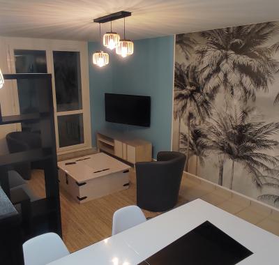 Dans un appartement cosy et près du scorff, je propose un canapé convertible dans le salon.