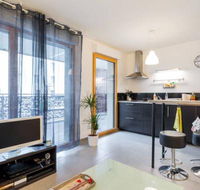 appartement avec bus 90 au pied de l'immeuble, 5 minutes a pied du métro D et des bus :C6,C14,2...