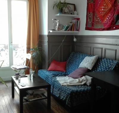Je vis dans un appartement à Montmartre où je loue une grande chambre avec parquet dans un imme...