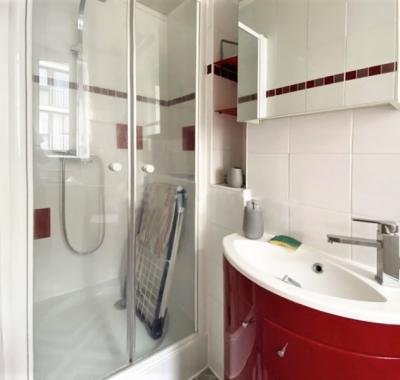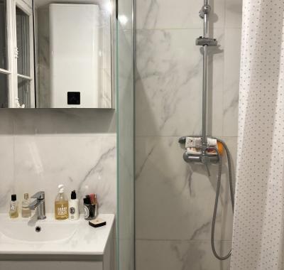 Chambre à l’écart dans l’appartement pour plus de discrétion avec sa salle de douche attenante....