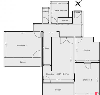 Proche Gratte-ciels, quartier Villeurbanne Flachet. Chambre à louer de 12m2 (02 sur le plan) da...