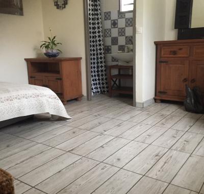 Grande chambre avec salle d'eau et WC privatif située au rez-de-chaussée de la maison. Spacieus...